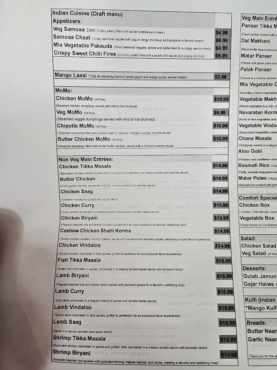 Reviewers rave about the freshness and bold spice profiles in every plate. From the savory Veg Samosas to the flavorful Chicken Biryani, each dish is prepared with care and vibrancy. Diners appreciate the variety while noting the restaurant's clean space and friendly service, making it a perfect spot for takeout or a cozy dine-in experience.